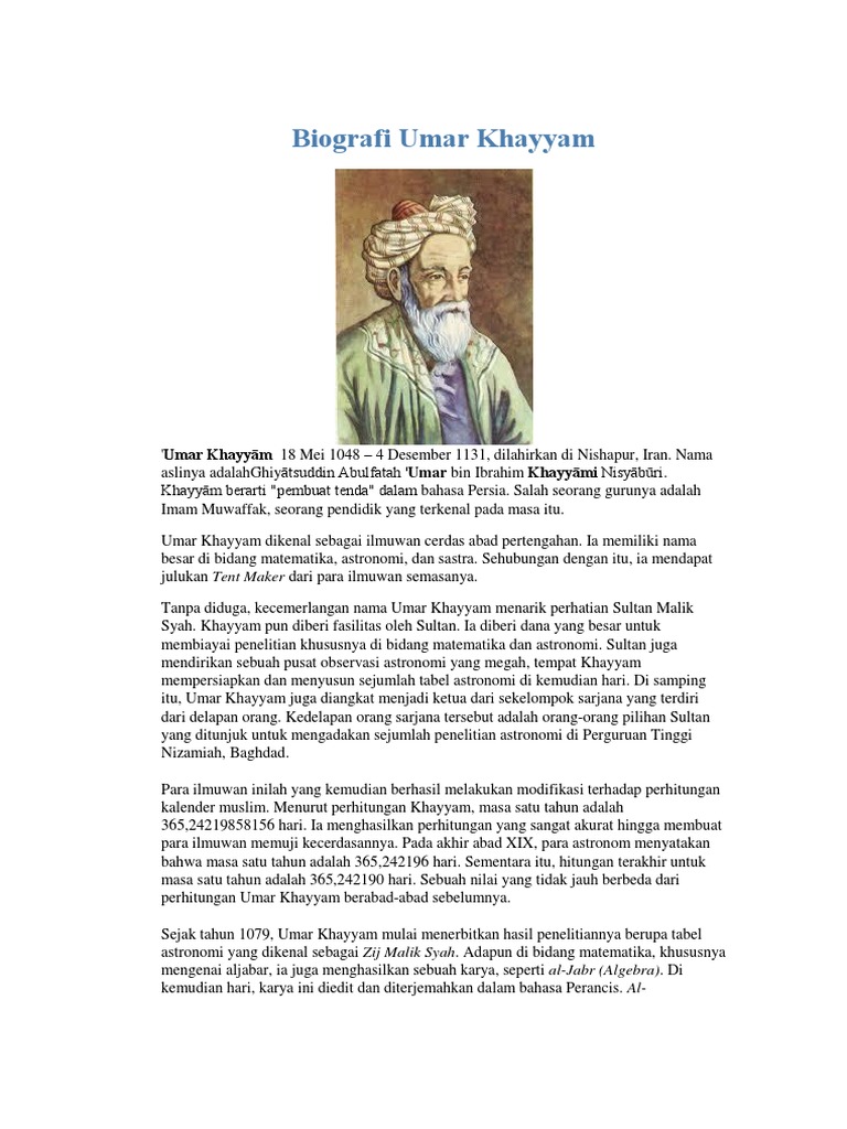 Biografi Tokoh Ilmuwan Muslim Umar Khayyam Dan Hasil Penemuannya