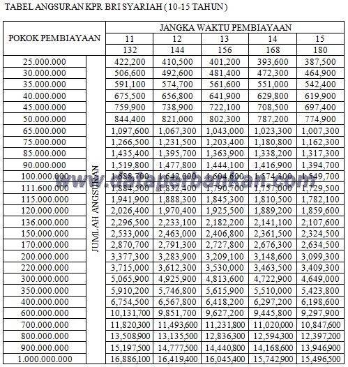 Tabel Angsuran KPR (1-15 Tahun) Bank BRI Syariah November 2020 – Dunia Perbankan