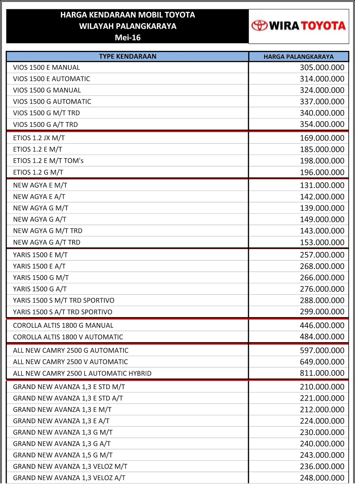 wira toyota palangkaraya harga avanza, innova, fortuner, yaris, vios, hilux, rush, agya,calya 2018: HARGA WIRA TOYOTA MEI 2016