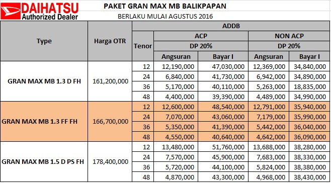 Daftar Harga Gran Max MB - Daihatsu Palangkaraya