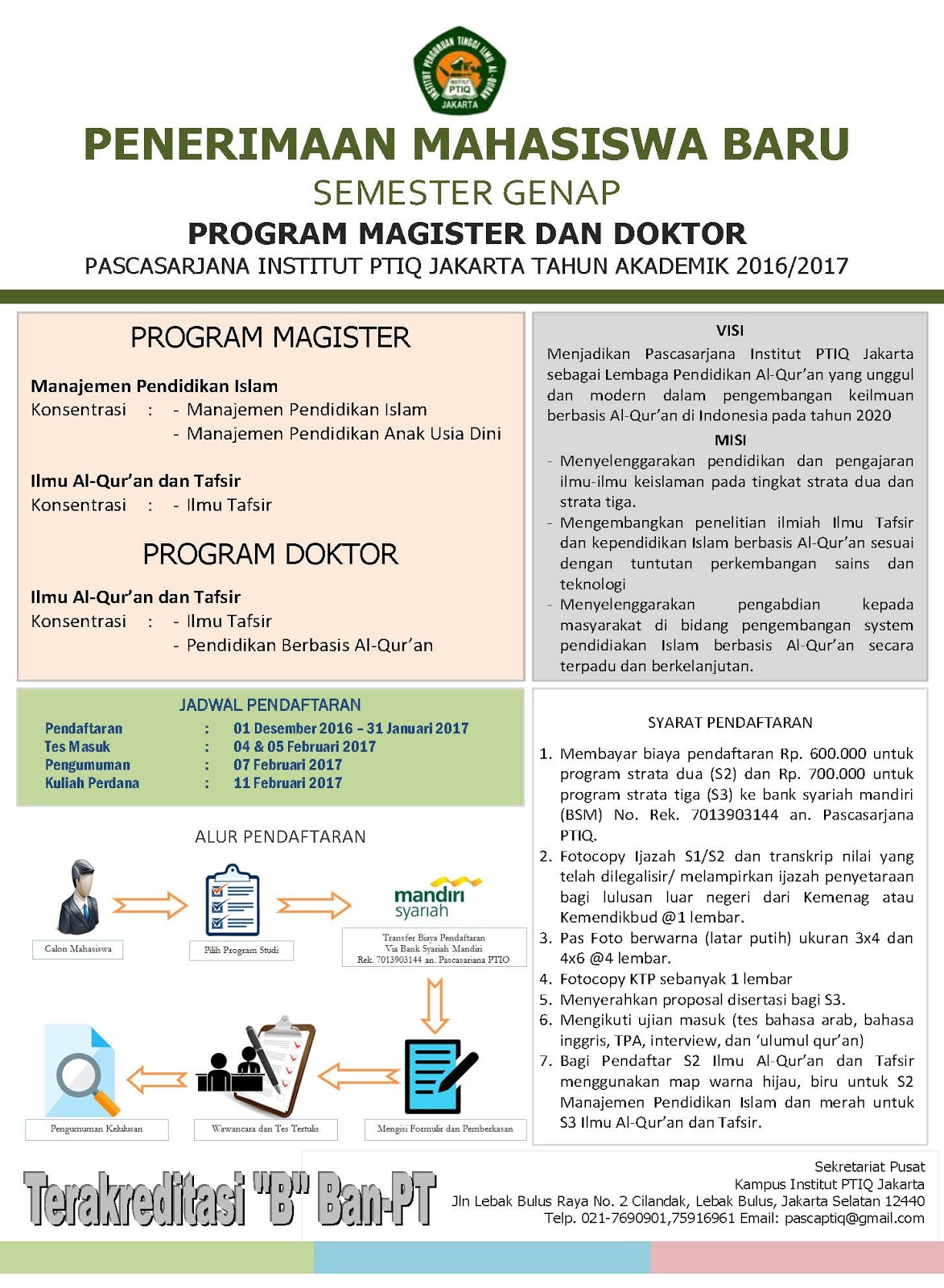 Penerimaan Mahasiswa Baru Semester Genap T.A. 2016/2017 ~ Pascasarjana Institut PTIQ Jakarta
