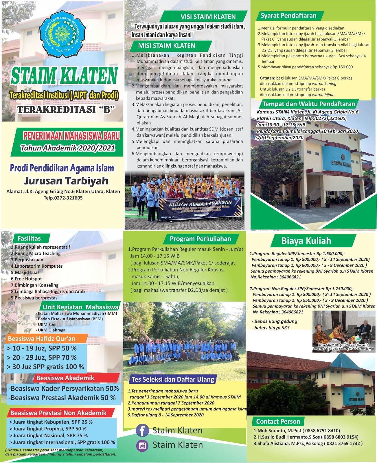 STAIM Klaten: PENERIMAAN MAHASISWA BARU TAHUN AKADEMIK 2020/2021
