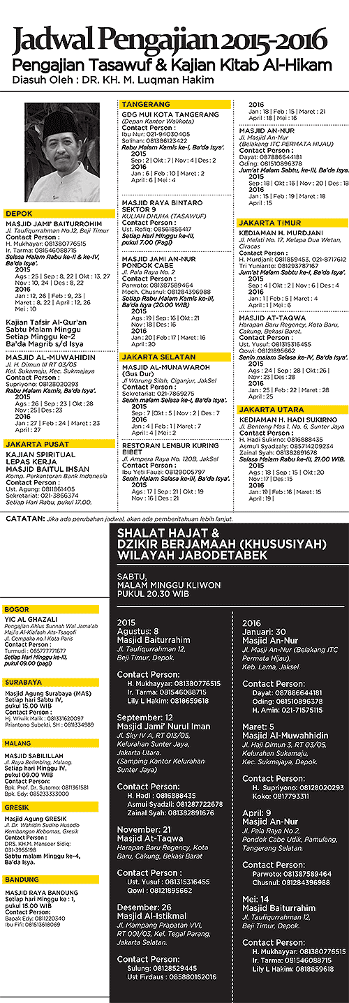 DR.KHM.Luqman Hakim on Twitter: “Jadwal Pengajian Sufi di Jakarta dan sekitarnya Jabodeta bersama KHM Luqman Hakim http://t.co/GC8FgOcNp6”