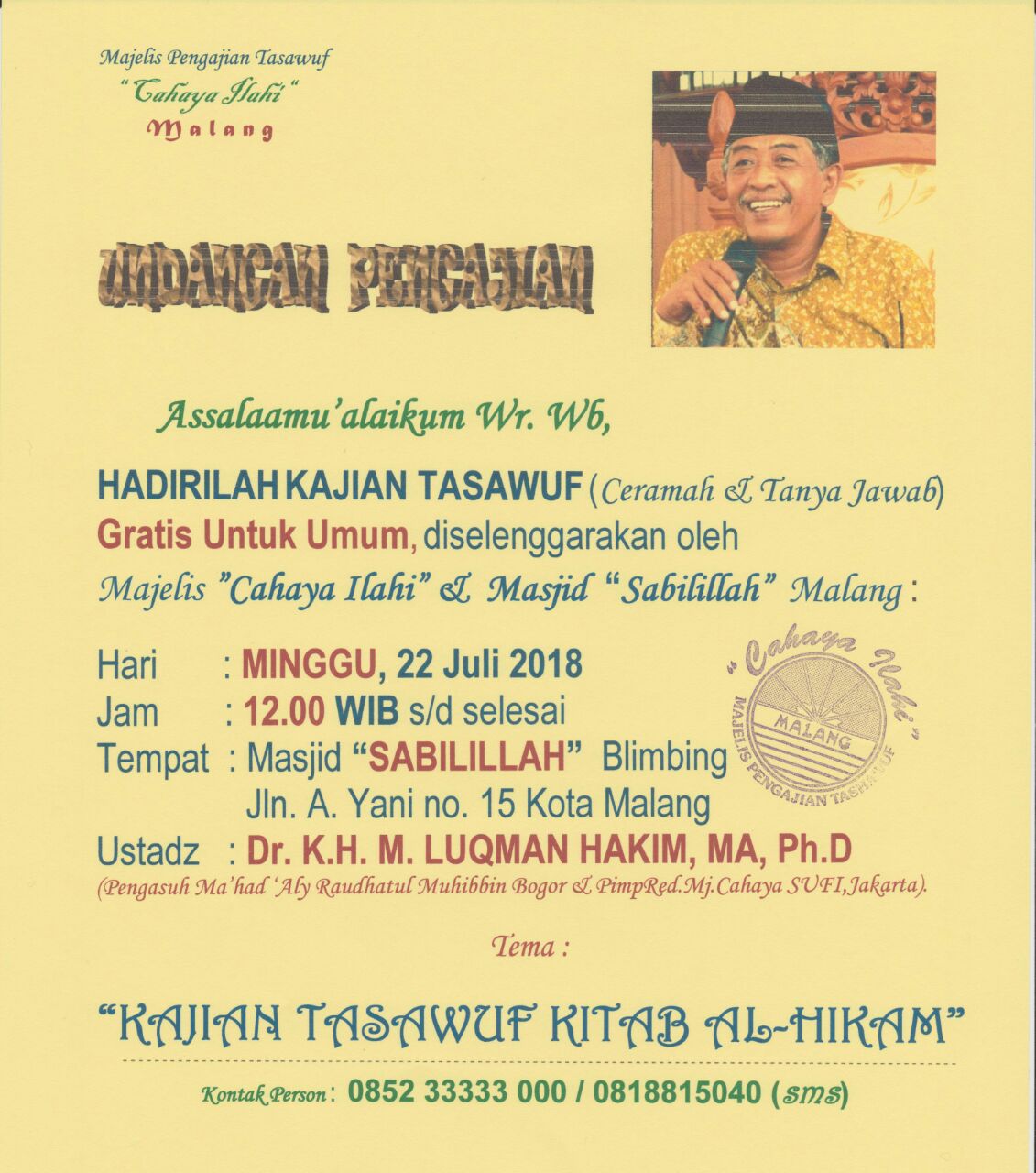DR.KHM.Luqman Hakim “Khusus kali ini Kajian Tasawuf di Malang pkl 12.00.… "