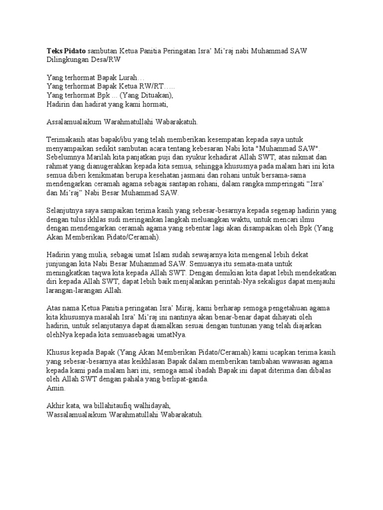 Teks Pidato sambutan Ketua Panitia Peringatan Isra' Mi’raj nabi …