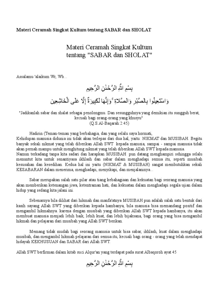 DOC) Ceramah tentang sabar | fitri faqot - Academia.edu