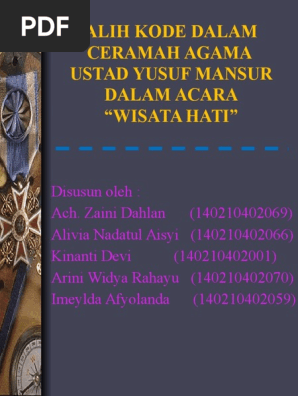 alih kode dalam ceramah agama ustad yusuf mansur dalam acara wisata hati