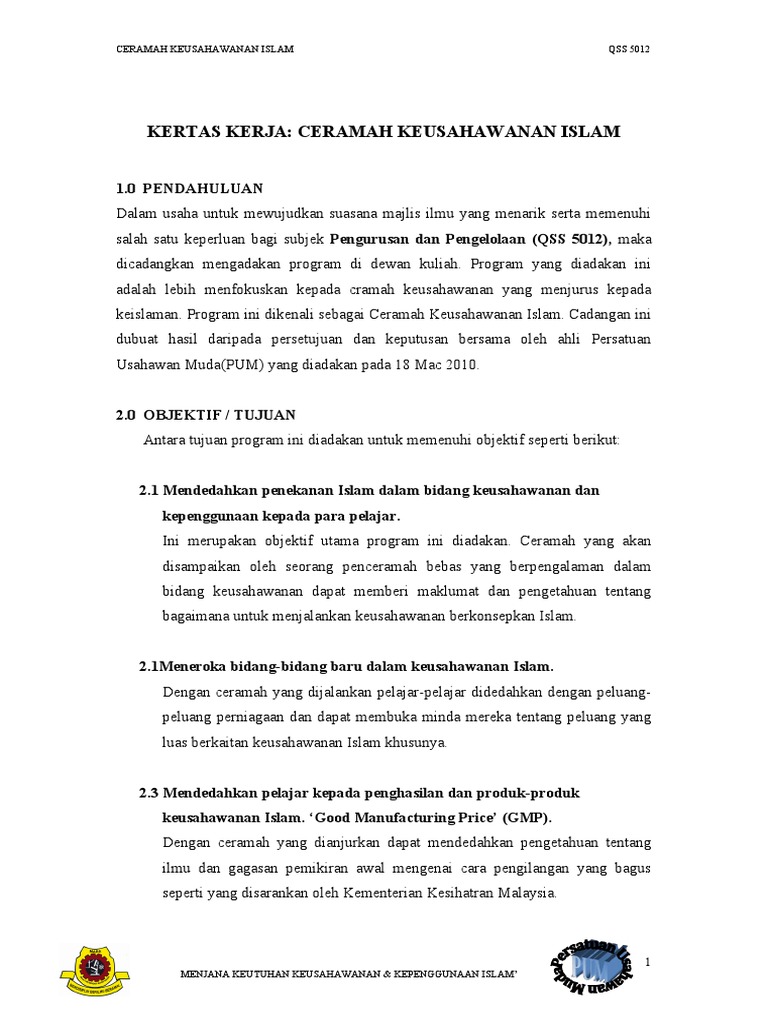 Proposal Majlis Ilmu Ceramah Keusahawanan Islam