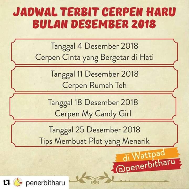 Penerbit Haru on Twitter: “Jadwal terbit Cerpen Wattpad Haru bulan Agustus 2017 yang terbit setiap hari Selasa https://t.co/apfqYTo1Bm #CerpenWattpadHaru… https://t.co/Z6neBRrbgl”