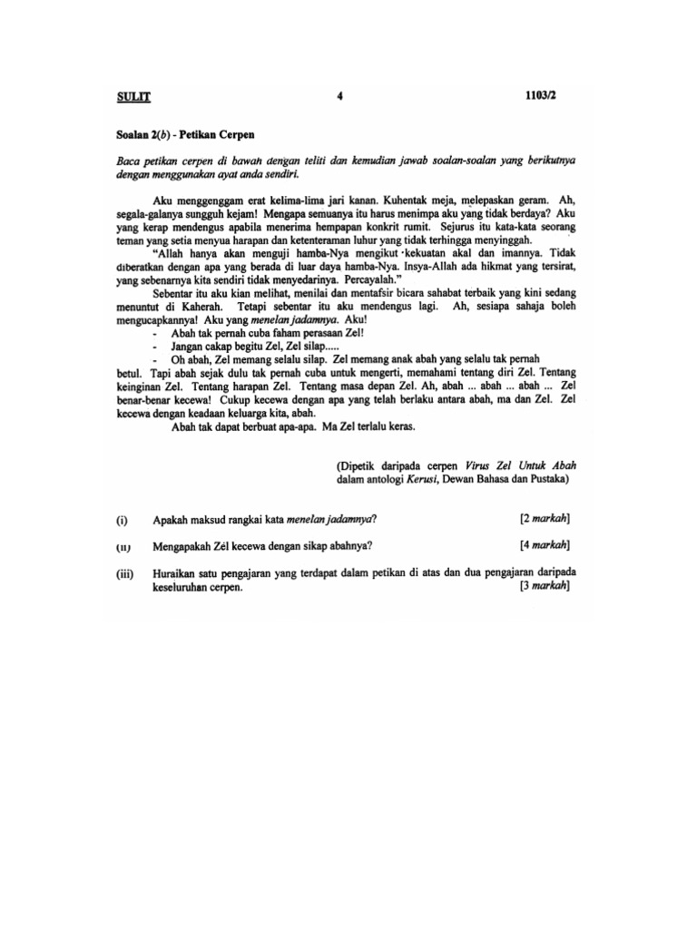 Koleksi Soalan 2(b) Pemahaman Cerpen