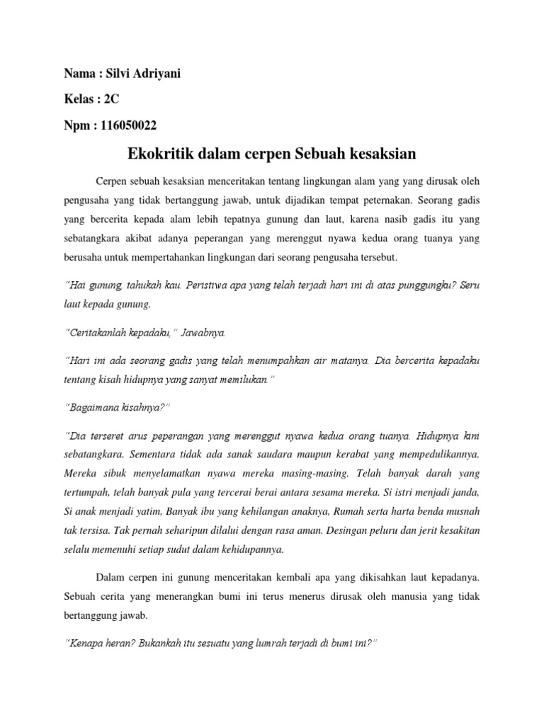 PDF) MANUSIA DAN LINGKUNGAN DALAM CERPEN INDONESIA KONTEMPORER: ANALISIS EKOKRITIK CERPEN PILIHAN KOMPAS
