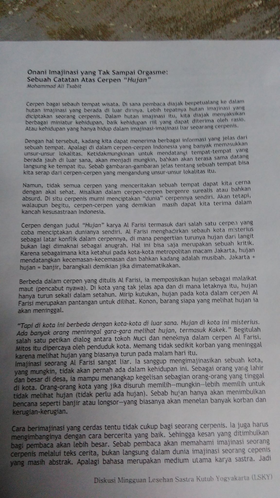 Radio Buku Coworking Space on Twitter: “Nah, inilah cerpen Hujan …