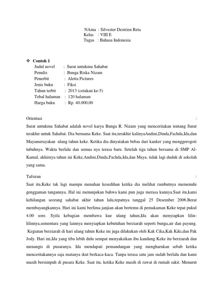 Contoh Resensi Novel Tentang Persahabatan - Kumpulan Contoh Makalah Doc Lengkap