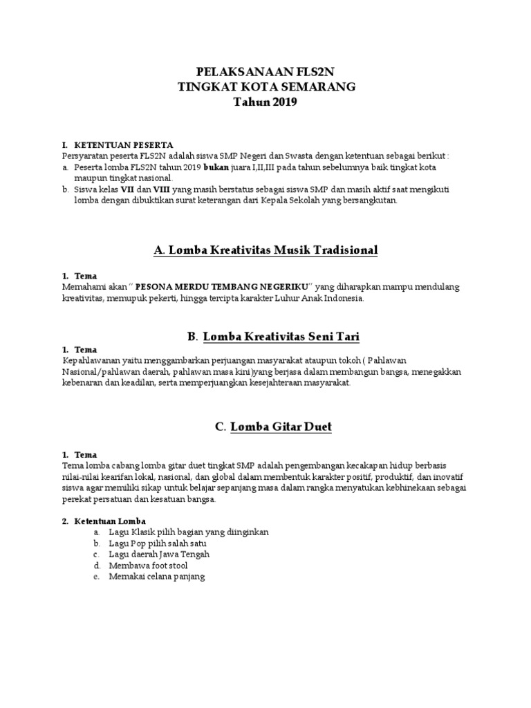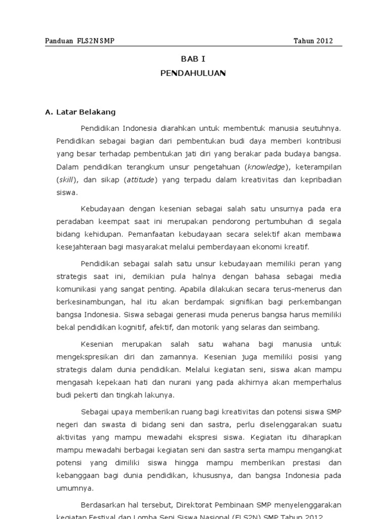 PDF) PETUNJUK PELAKSANAAN FESTIVAL DAN LOMBA SENI SISWA NASIONAL (FLS2N) SEKOLAH MENENGAH PERTAMA TAHUN 2016 | ansar sukarta - Academia.edu