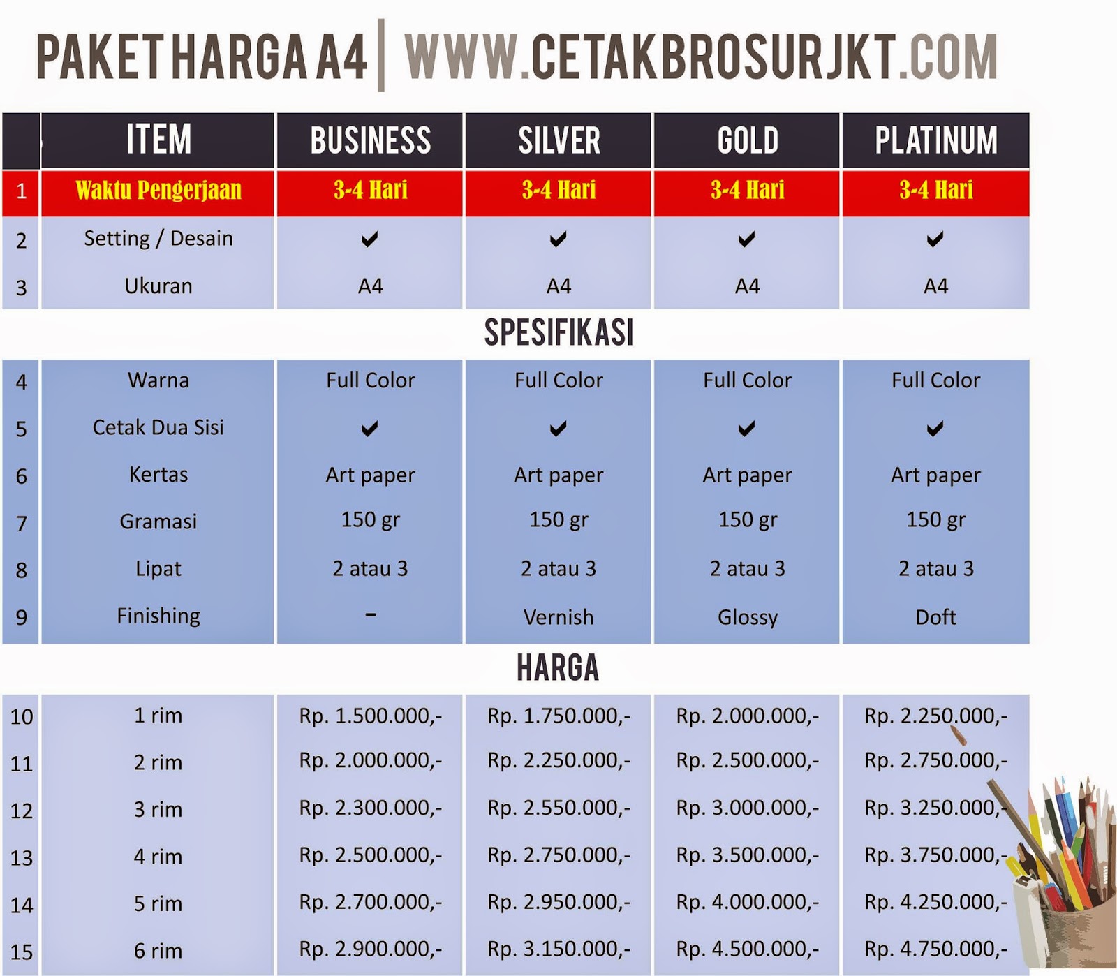 DAFTAR HARGA BROSUR | Jasa Layout & Cetak Buku