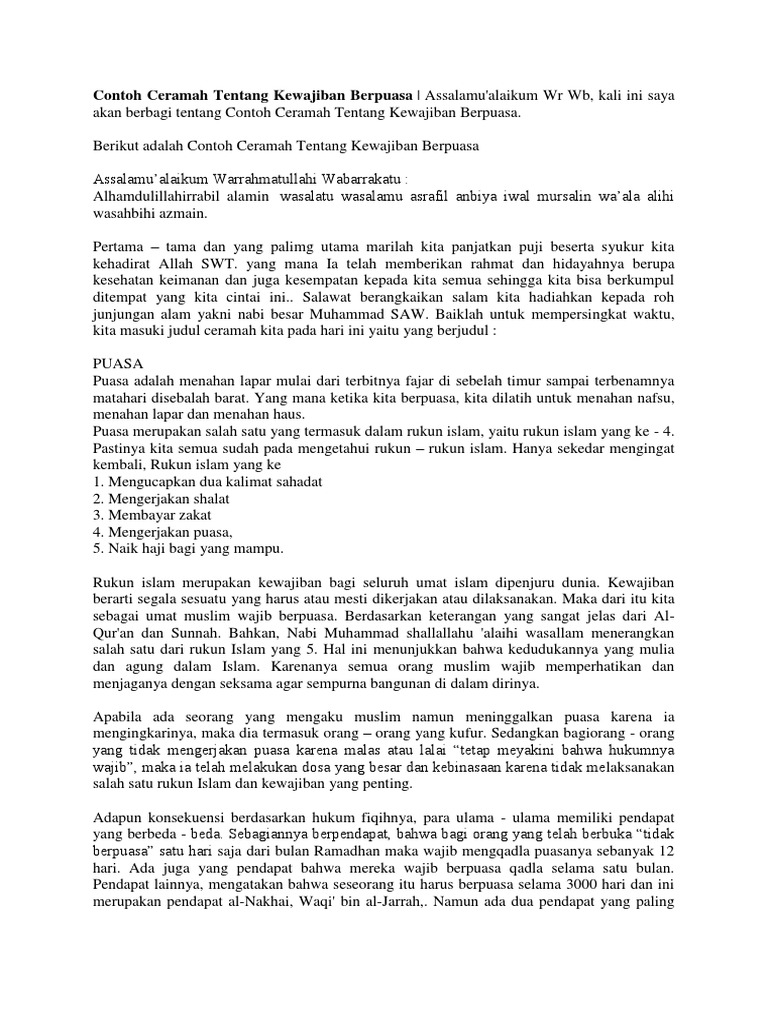 Contoh Ceramah Tentang Kewajiban Berpuasa