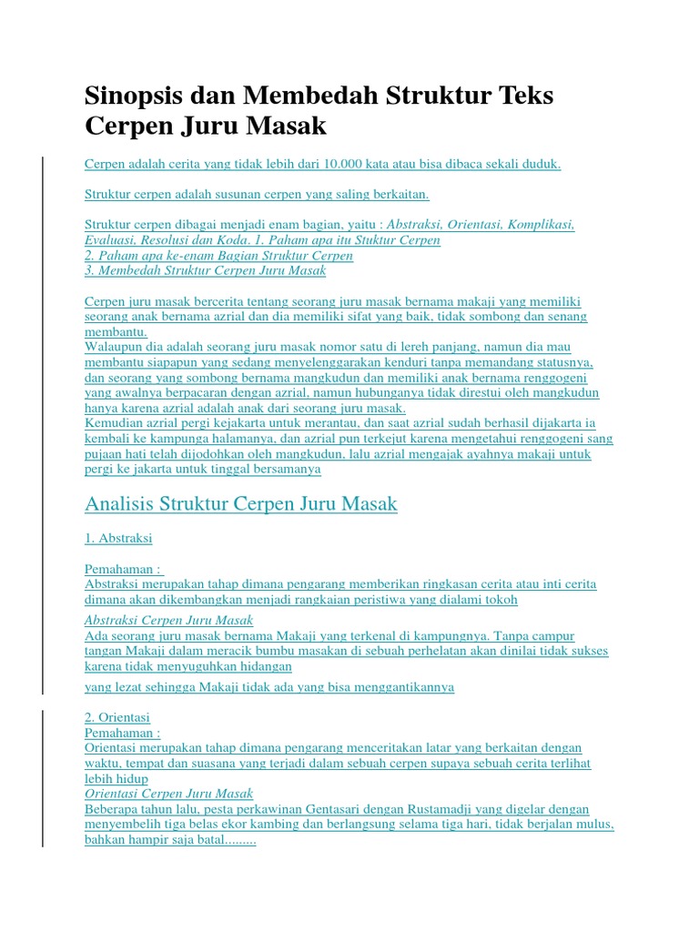 Struktur Teks Cerpen Juru Masak Karya Damhuri Muhammad - Berbagai Struktur