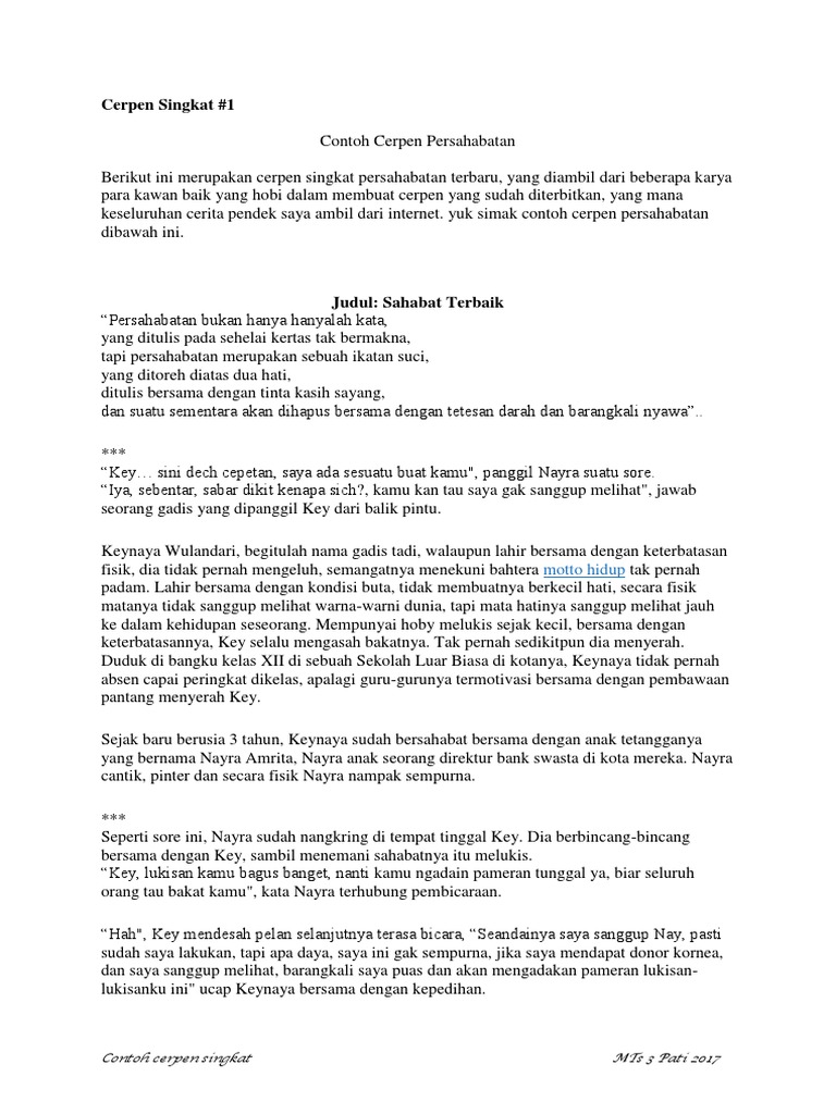 9+ Contoh Cerpen ( Cerita Pendek ) Singkat / Persahabatan / Pendidikan / Lucu - madeblog.com
