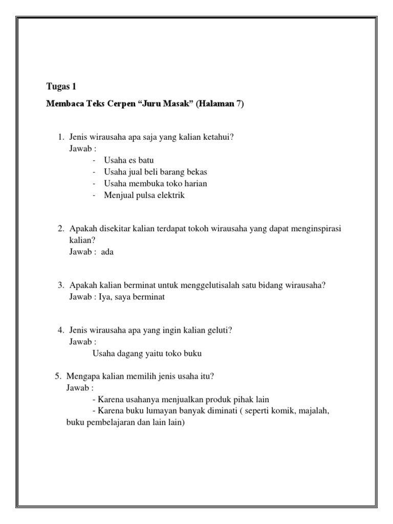 Contoh Cerpen Wirausaha Dan Unsur Intrinsiknya - Contoh O