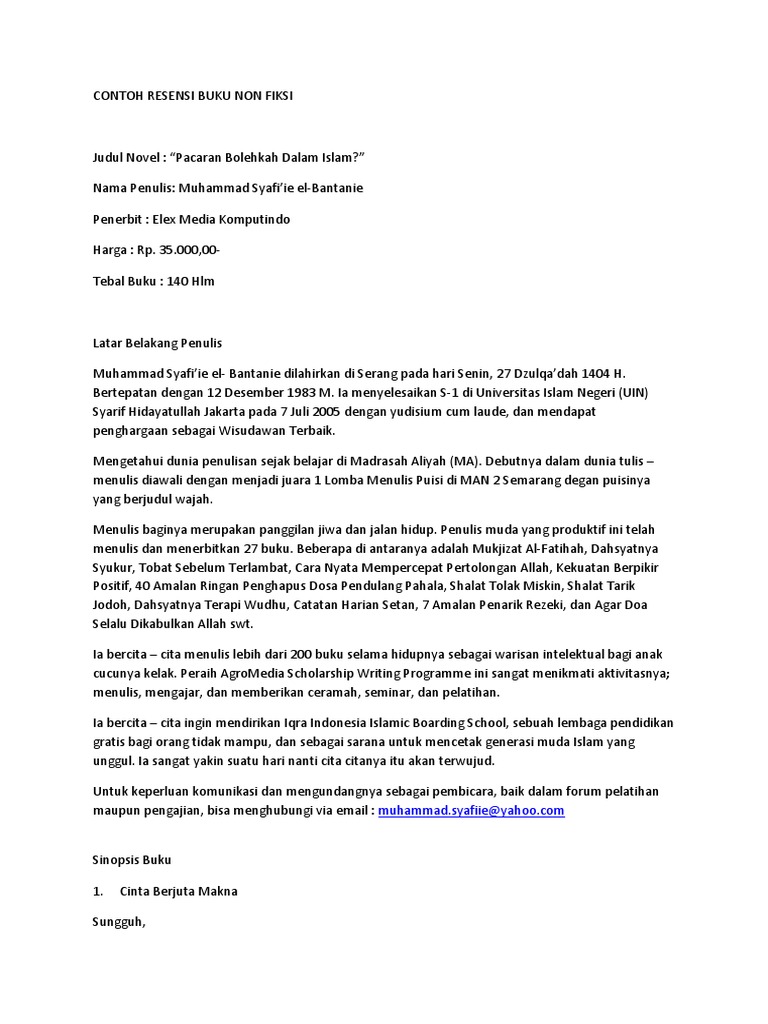 DOC) Contoh Resensi Buku Non Fiksi Lengkap dengan Panduan Caranya | Fidel Apria - Academia.edu
