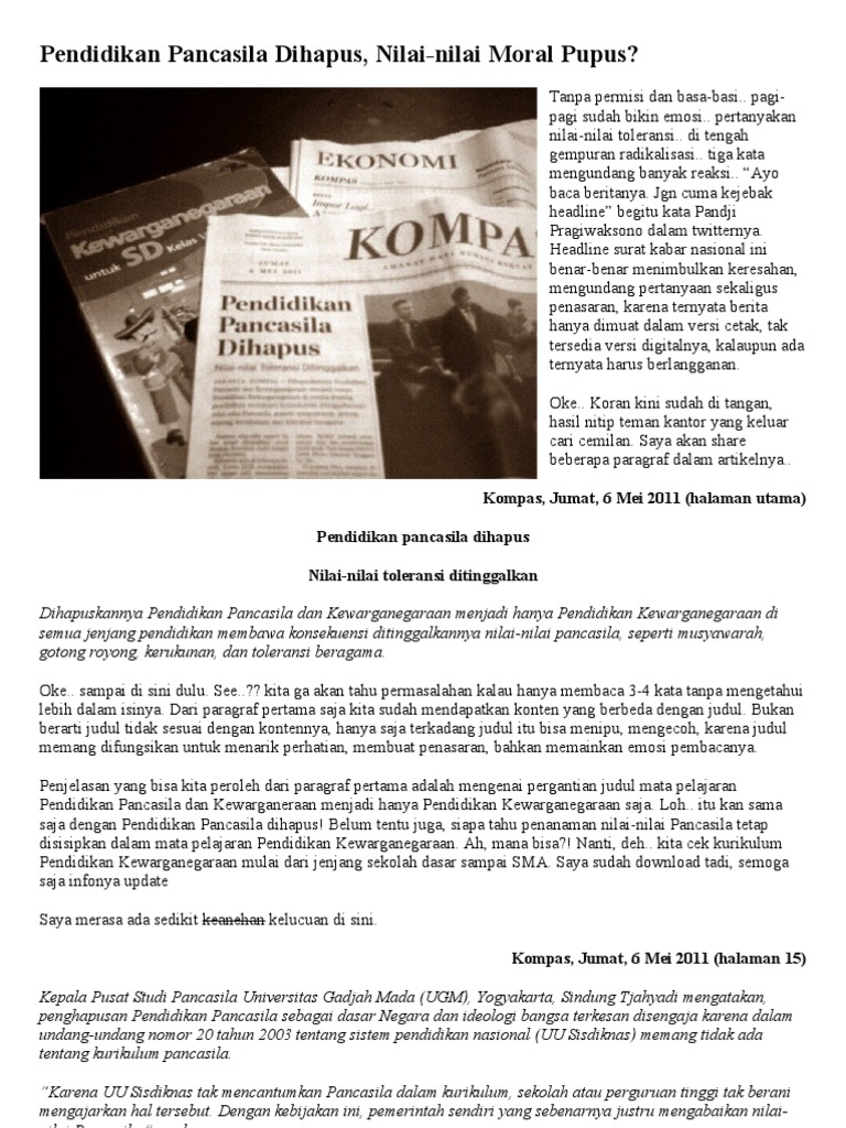 Pendidikan Pancasila Dihapus, Nilai-nilai Moral Pupus? | kocomripat