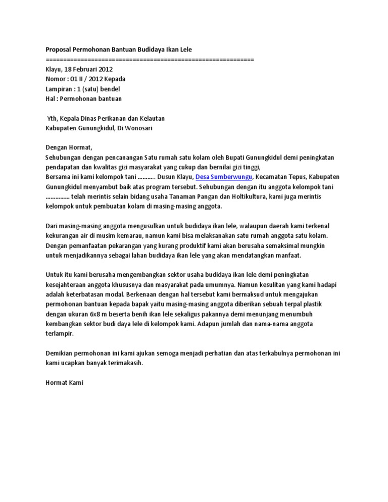 DOC) Contoh Proposal Budidaya ikan lele | Tashi Photography - Academia.edu