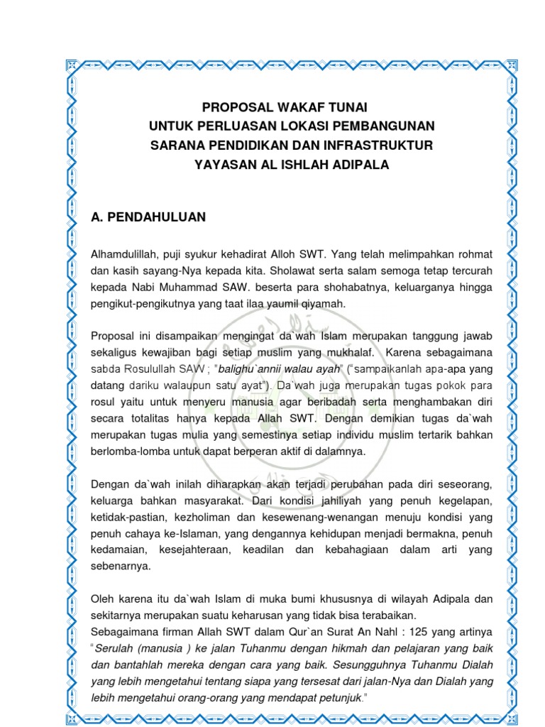 DOC) PROPOSAL WAKAF TANAH UNTUK PEMBEBASAN LAHAN MASJID BAITUSSALAM PERUMAHAN BUMI ELOK SEJAHTERA | Dedek Alfa - Academia.edu