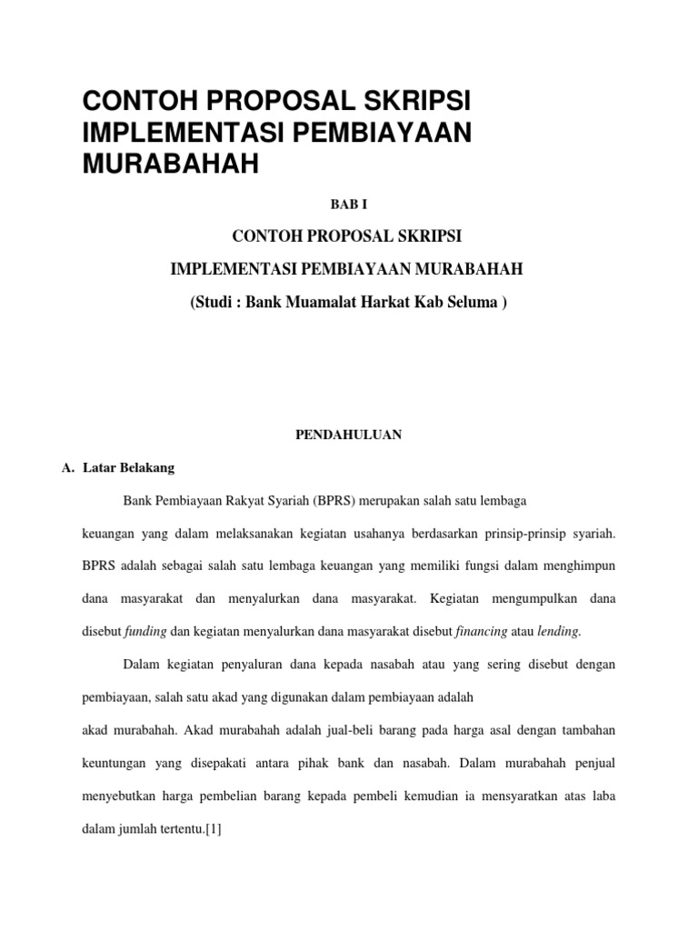 Contoh Proposal Skripsi Implementasi Pembiayaan Murabahah