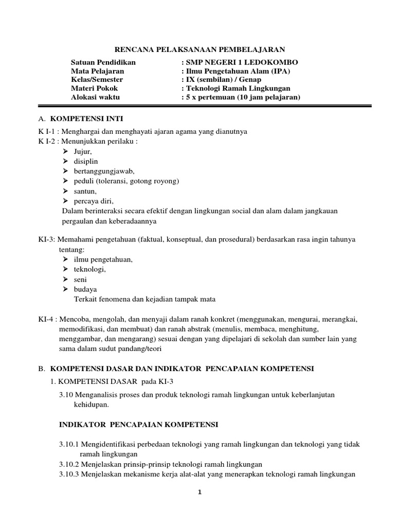 INSTINK MATHEMATIC: Rpp Proses produk teknologi ramah lingkungan KK2013