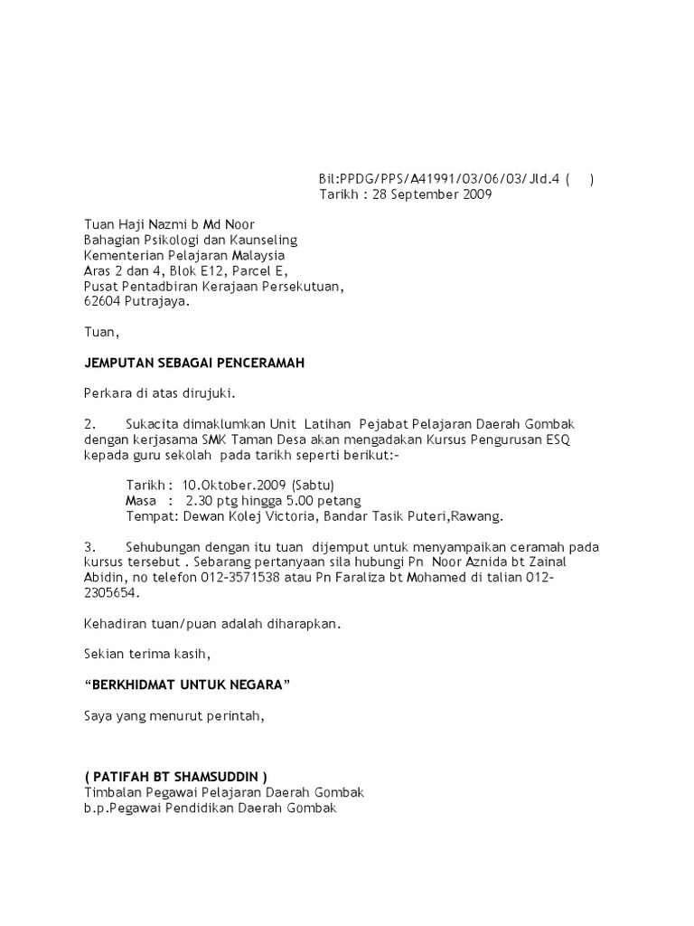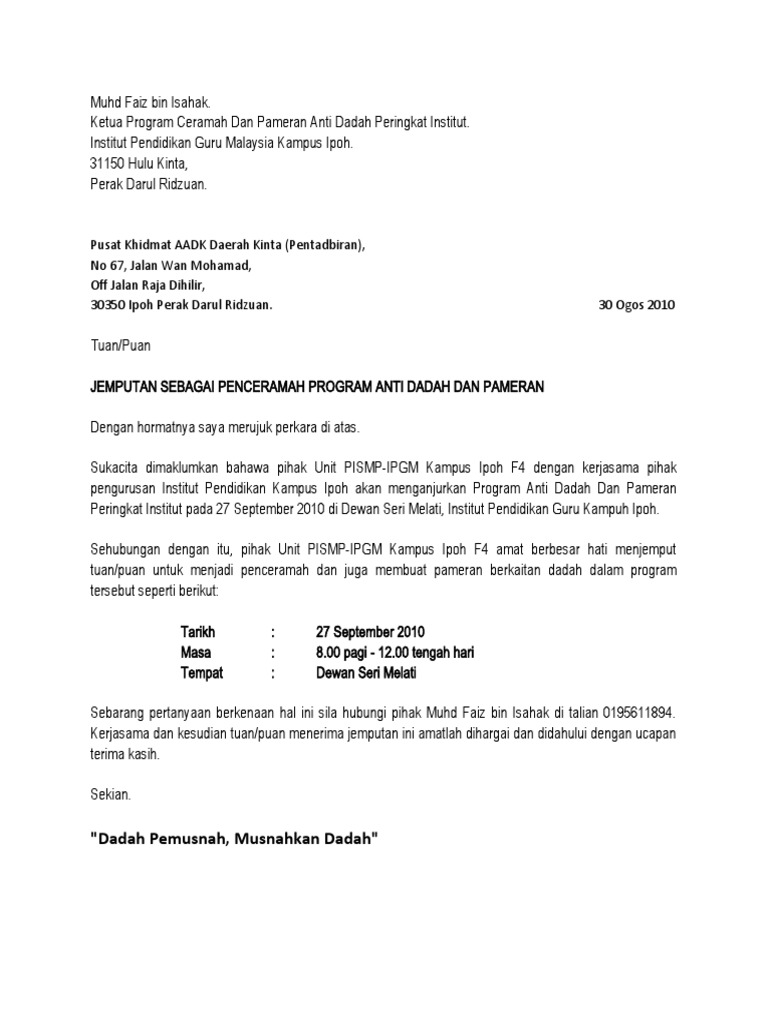 Surat Rasmi Jemputan Memberi Ceramah - Nice Info c