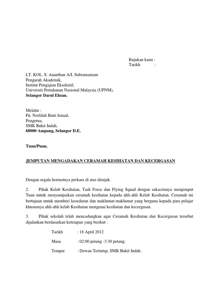 DOC) Surat jemputan penceramah | Nurafifah Kamarudin - Academia.edu