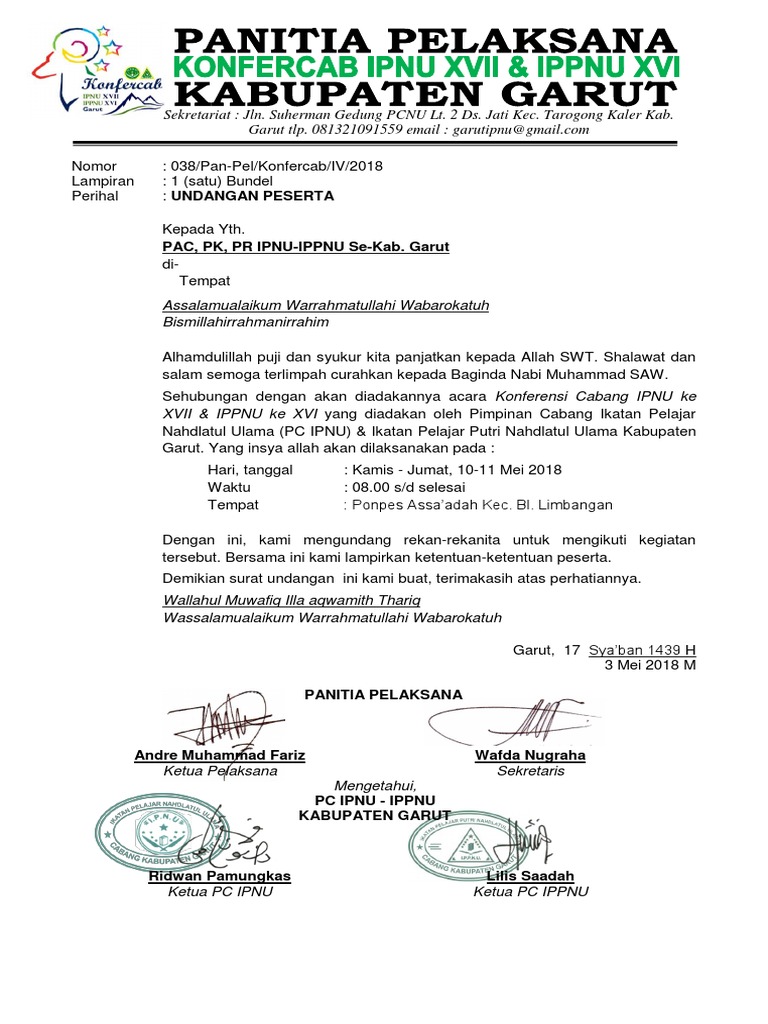 Contoh Surat Undangan Ipnu Ippnu Pdf - Sample Surat Undangan