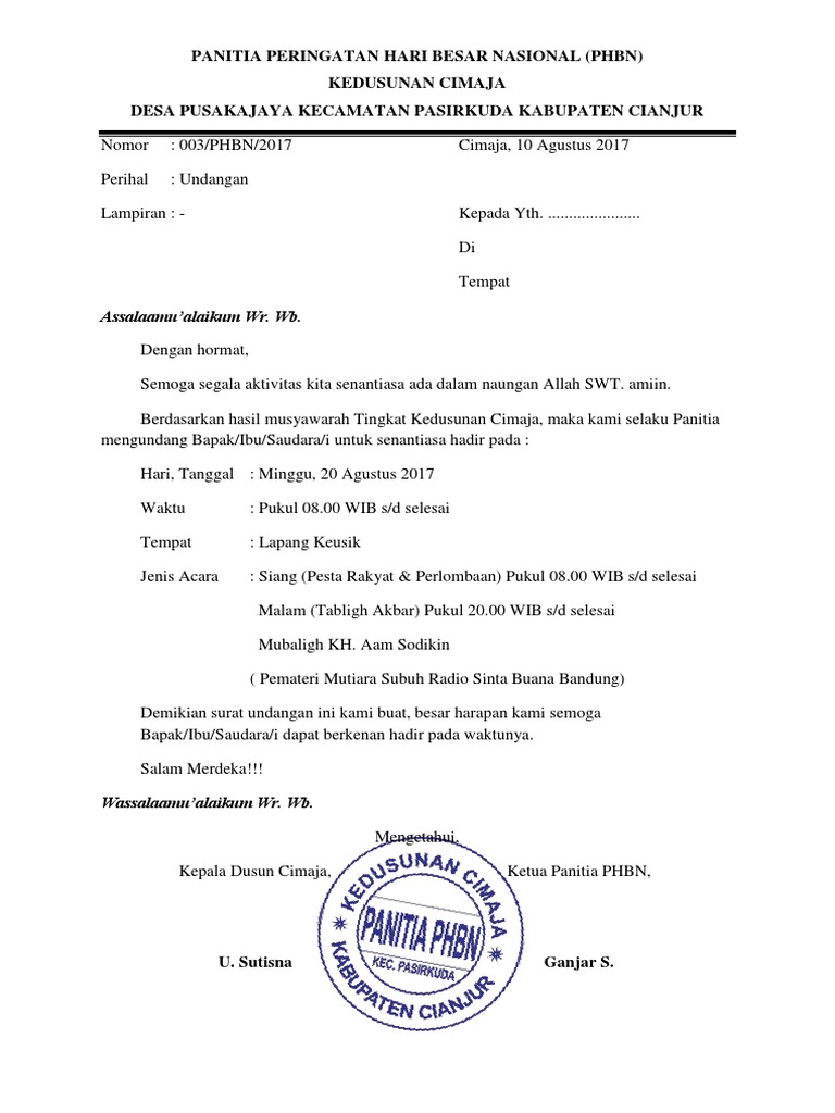 Contoh Surat Undangan - Resmi, Tidak Resmi, Rapat, Syukuran dan Singkat | dosenpintar