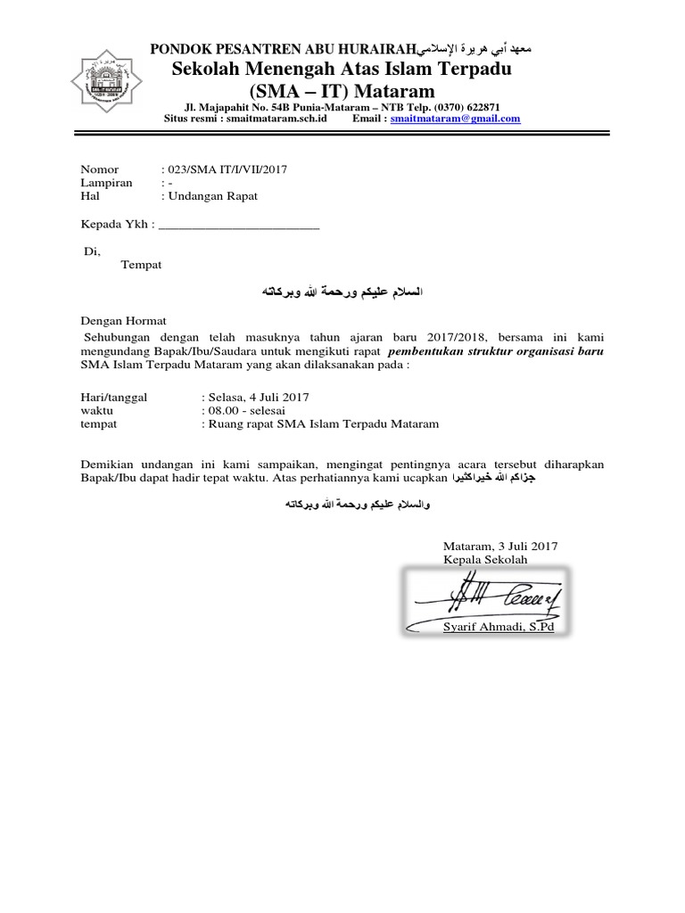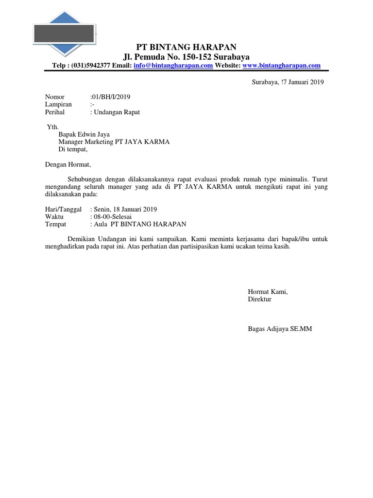 16 Contoh Surat Undangan Rapat Perusahaan, Sekolah, dll - Contoh Surat