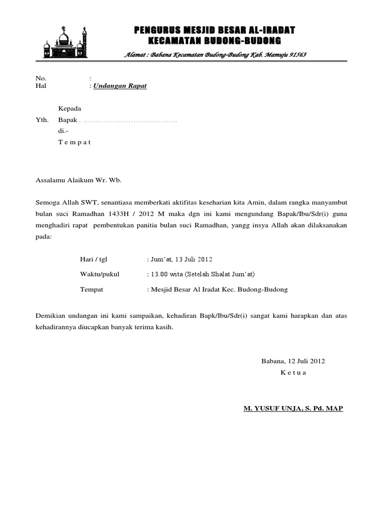 Contoh Surat Undangan Rapat Internal - Dunia Sosial