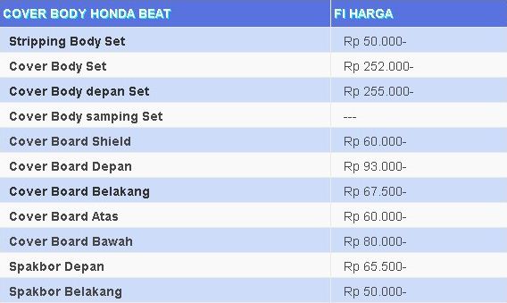 Inilah Daftar Harga Cover Body Honda Beat FI 2016 Fullset Depan Belakang - Seputar Satria