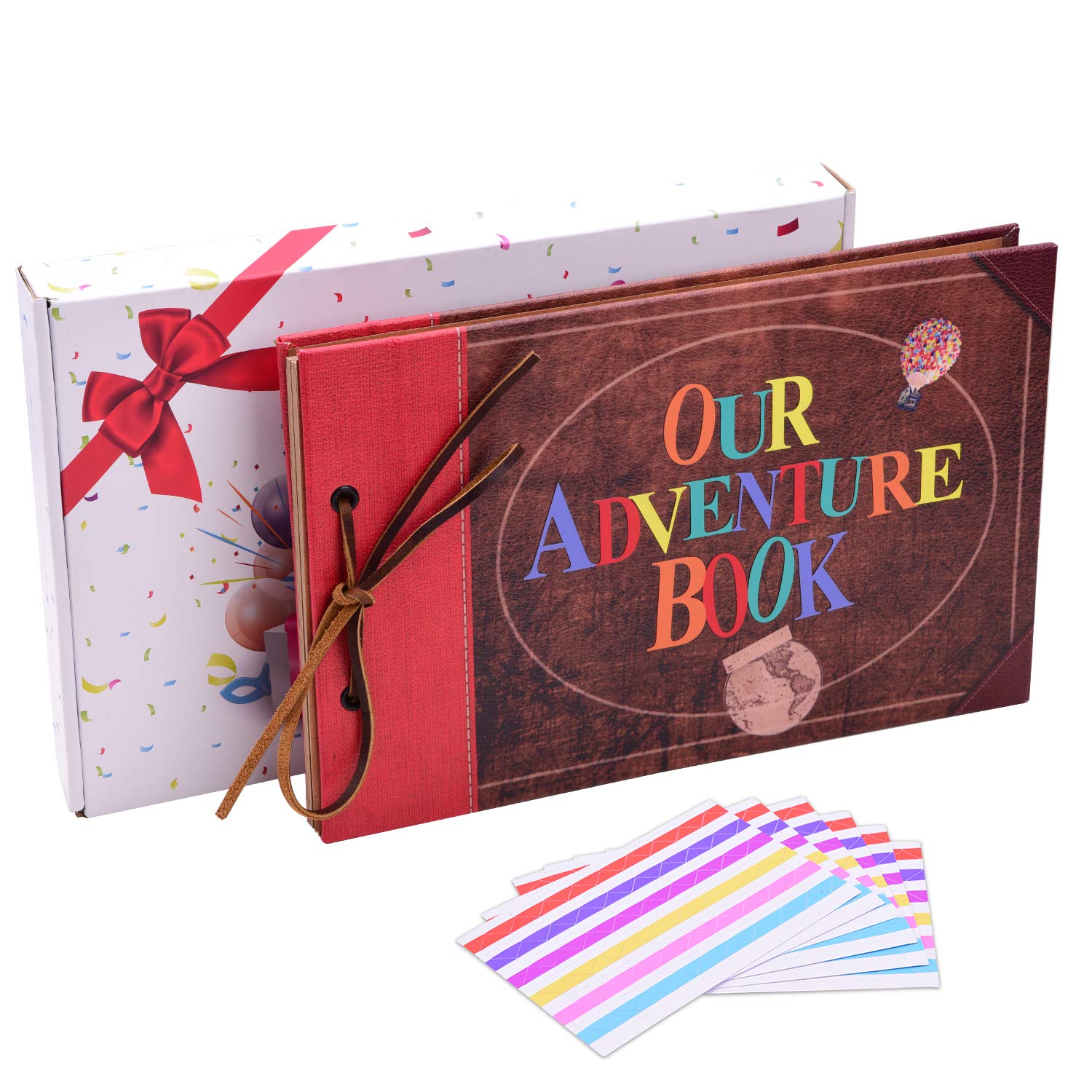 Gotideal Leather Cover Our Adventure Book Scrapbook with Vintage Inner Pages, DIY Handmade Photo Album Movie Up Travel Scrapbook for Christmas Gift, Wedding, Friend, Memory with Stickers (Simple): Amazon.in: Home & Kitchen