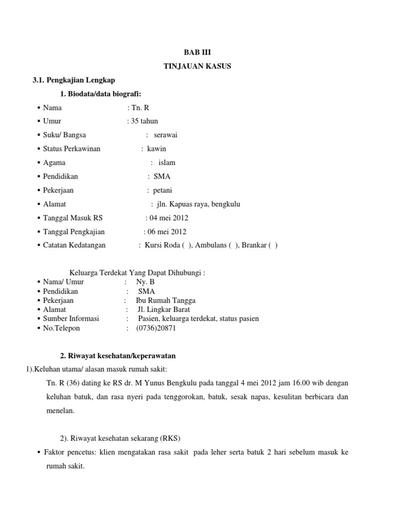 Bab Iii Tinjauan Kasus 3.1. Pengkajian Lengkap 1. Biodata/data biografi
