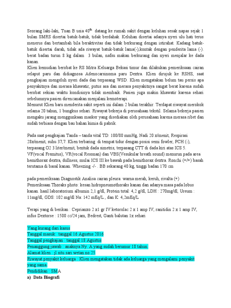 1. Data Biografi Nama Nama Pasien : Tuan A Usia : 32 Tahun Jenis kelamin :laki-laki Pekerjaan : - Agama : - Suku bangsa : - Diag