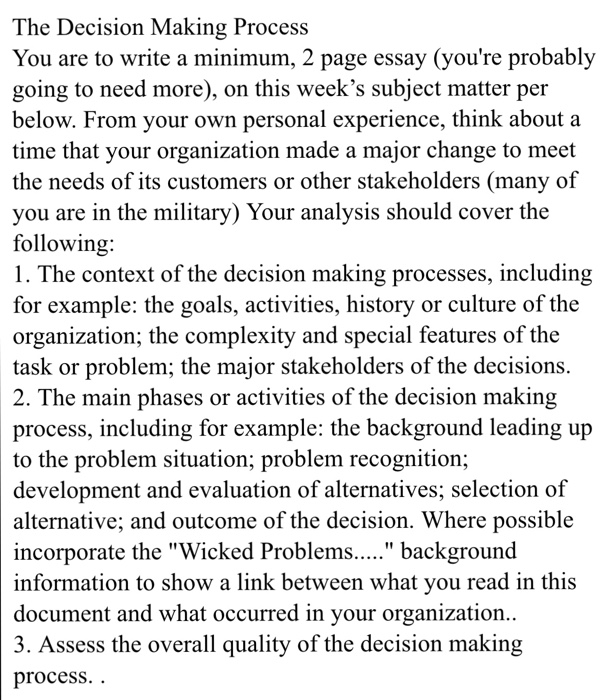 Solved: The Decision Making Process You Are To Write A Min… | Chegg.com