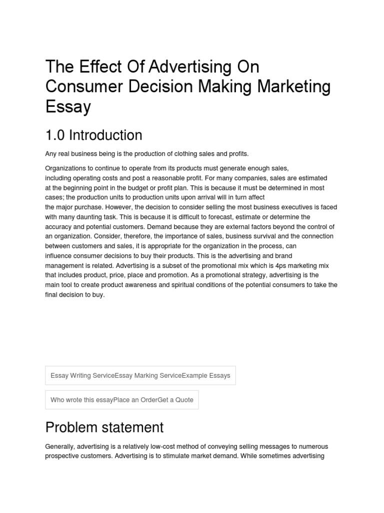 The Effect of Advertising on Consumer Decision Making Marketing Essay | Advertising | Marketing