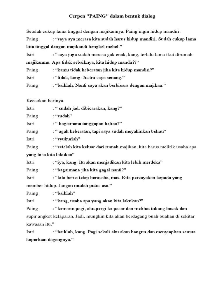 Tugas B.indonesia mengubah dari cerpen ke teks dialog (kalau bisa secepatnya) - Brainly.co.id