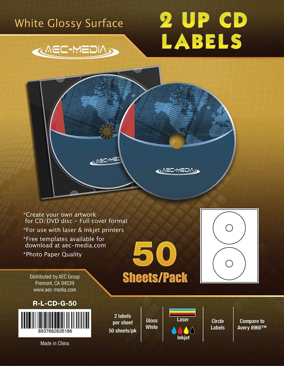 Amazon.com : White Glossy Surface 2 UP Full Cover CD/DVD Label - 50 Sheets (100 Labels) : Office Products