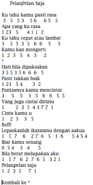 Not Angka Lagu Kotak - Pelan Pelan Saja | Pianika | Recorder | Keyboard | Suling | Chord Piano