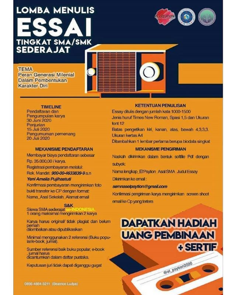 Lomba Essay Tingkat SMA/Sederajat 2020 - Eventkampus.com