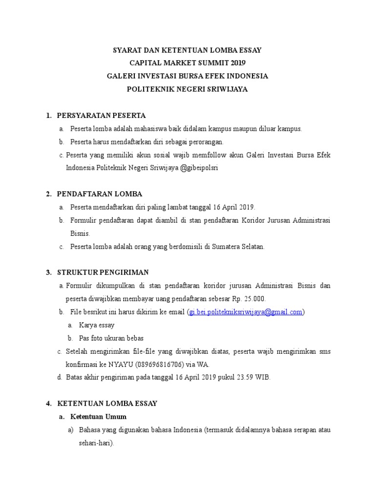 Syarat Dan Ketentuan Lomba Essay Capital Market Summit 2019 …