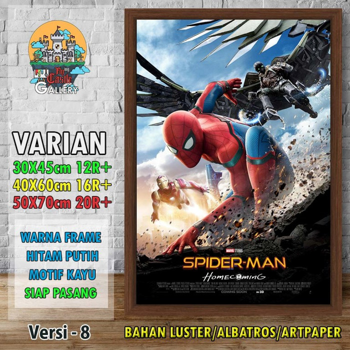 Jual Gambar Poster Film Spiderman Homecoming + Frame V8 - SIZE Standar - Kota Bandung - Flying Castle Gallery | Tokopedia