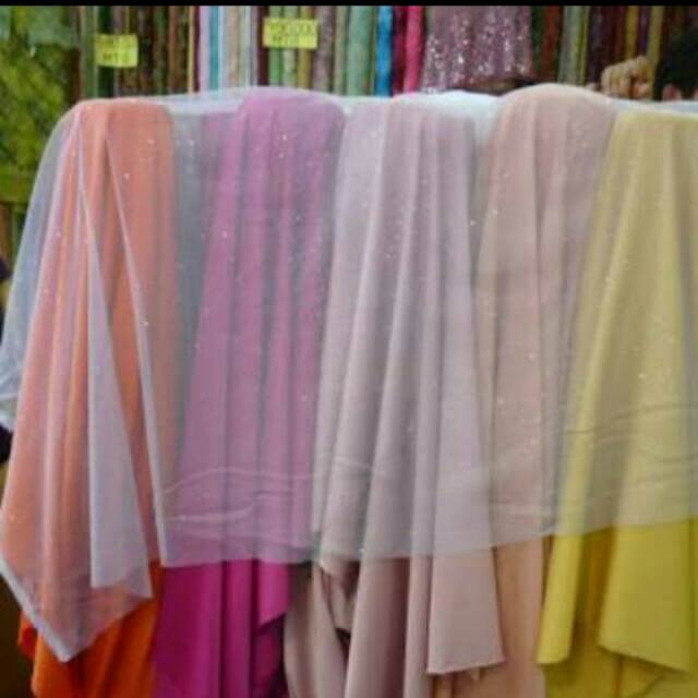 Kain Tile Mutiara Polos Gliter Tulle Gliter | Shopee Indonesia