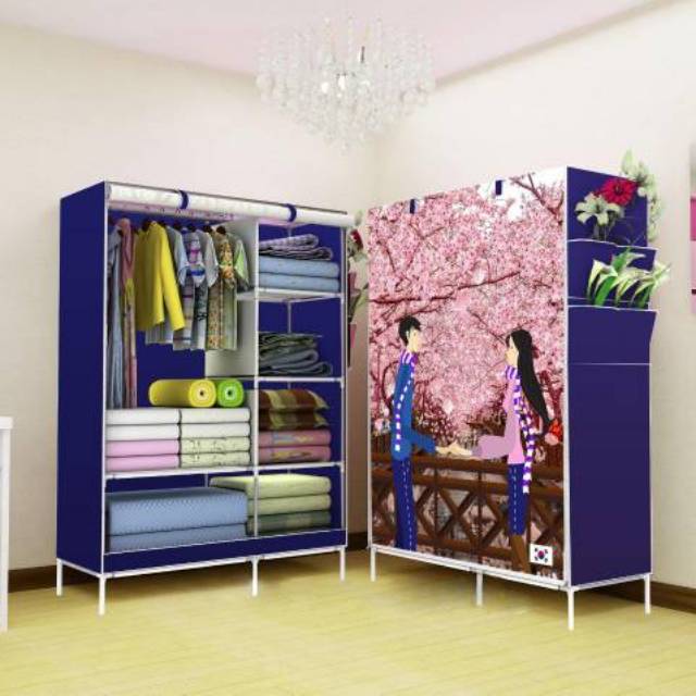 Rak Pakaian / rak baju pakai resleting /Lemari pakaian /Lemari Baju / Lemari Rakit/ Lemari kain/ Lemari portable MOTIF BARU KARAKTER MENARIK (105) | Lazada Indonesia