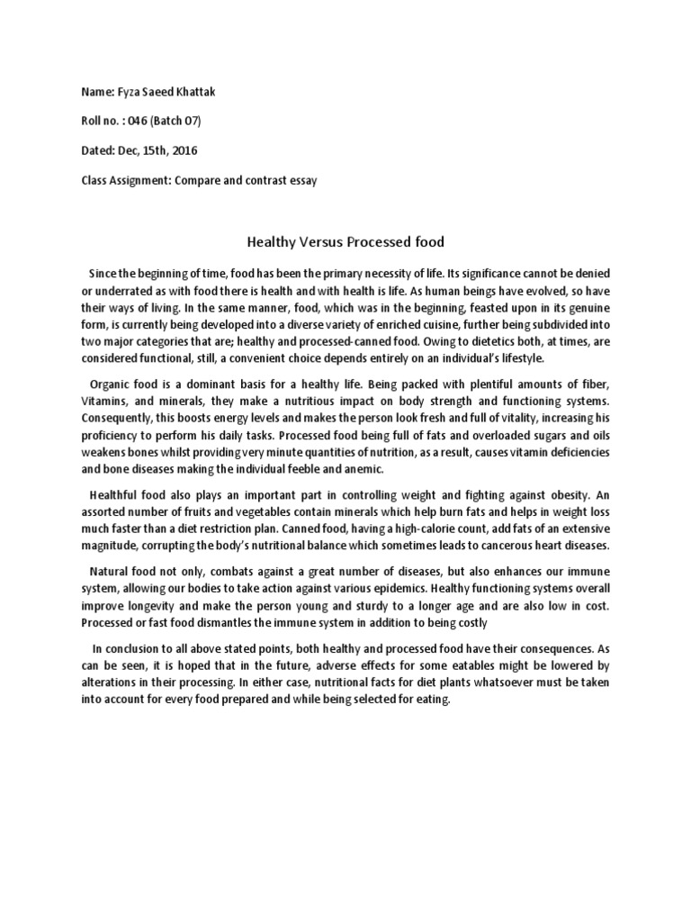 Compare and Contrast Essay (healthful vs processed food).docx …